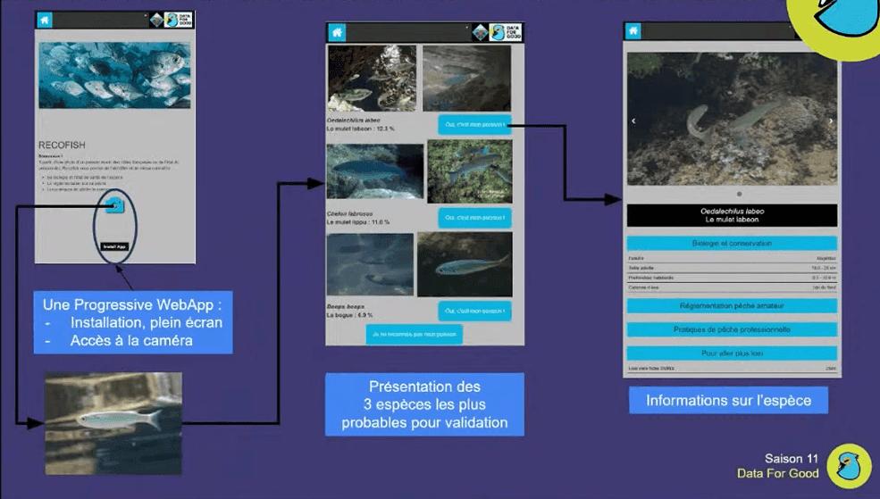 Le projet Recofish consiste à créer une application pour smartphone de sensibilisation à la biodiversité marine et à une consommation des produits de la mer plus responsable grâce à une reconnaissance d'espèce via une photo.
