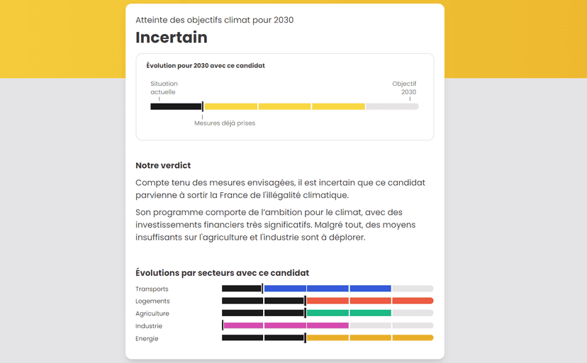Développement de la plateforme de comparaison des programmes à la présidentielle 2022 pour comprendre qui sortira la France de l'illégalité climatique